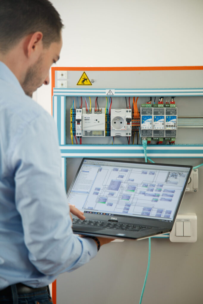 En tant qu’intégrateur ensemblier, nous intervenons sur la Gestion Technique du Bâtiment (GTB), les courants faibles, l’électronique et le développement logiciel.