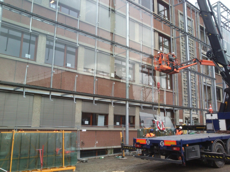 Prestations : Gestion des ventelles motorisées des façades bioclimatiques par un dispositif de régulations dans le but de garantir les objectifs de performance énergétique. Les tampons (espace entre les façades existantes des bâtiments et la surface en verre neuve) sont équipés de capteurs permettant cette régulation en fonction de la température intérieure du tampon, la vitesse de l’air, le niveau d’hygrométrie et la température surfacique des façades en verre.